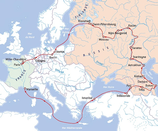 Il giro di Alexandre Dumas (padre) in Russia, iniziato nel 1859 e finito nel 1861. Aggiungerei “amo noi” ma credo che oggi non sia un’idea possibile, né tanto meno consigliabile (via).